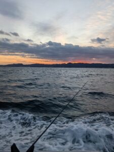 また勝山沖で大きな島を見ながらカワハギ釣りかな?思ってたのですが出発と同時に「竹岡沖に行きます。30分ほど走りますね。」とアナウンスがあり気が引き締まります。
