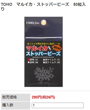 TOHOから販売しているマルイカストッパービーズが50個入りで290円。