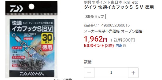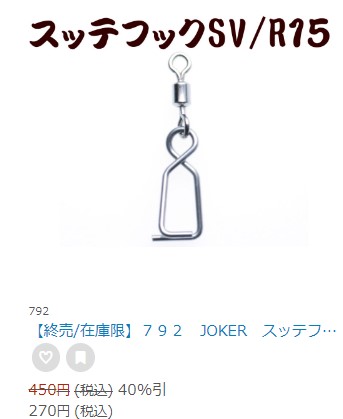 マルイカフリークを虜にするJOKERからスナップ。スッテを購入したついでに購入できるのは良いですね。15個入り270円という値段。
